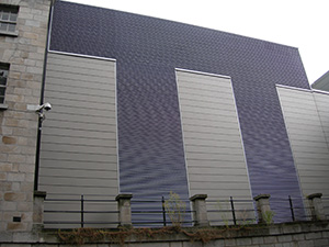 Single bank extruded aluminium larger ‘zed’ shaped blade louvre pitched at 140mm, designed specifically for use as an external plant screen